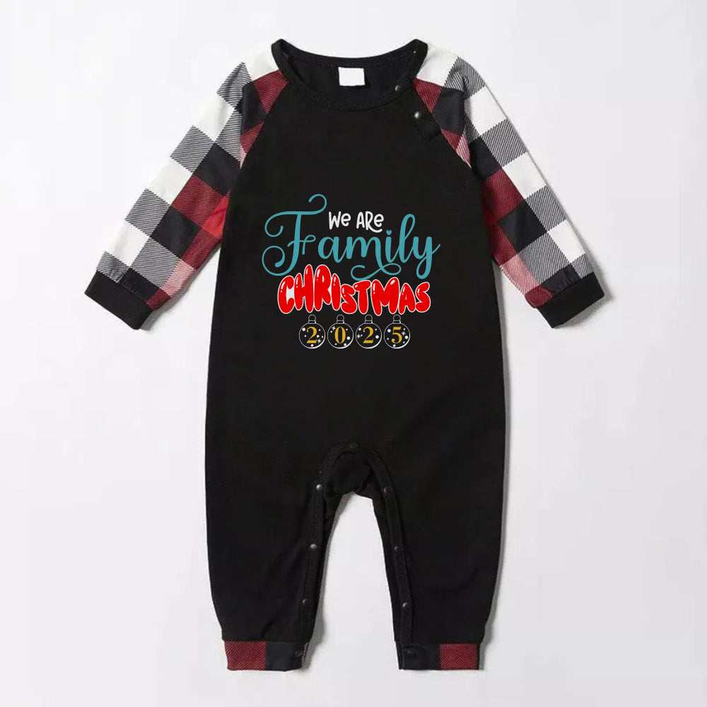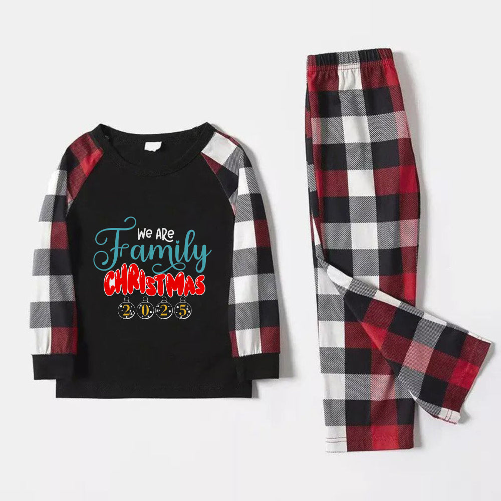 Christmas Family Matching Pajamas-Red and Gray Plaid Pjs set with "We Are Family Christmas" Print