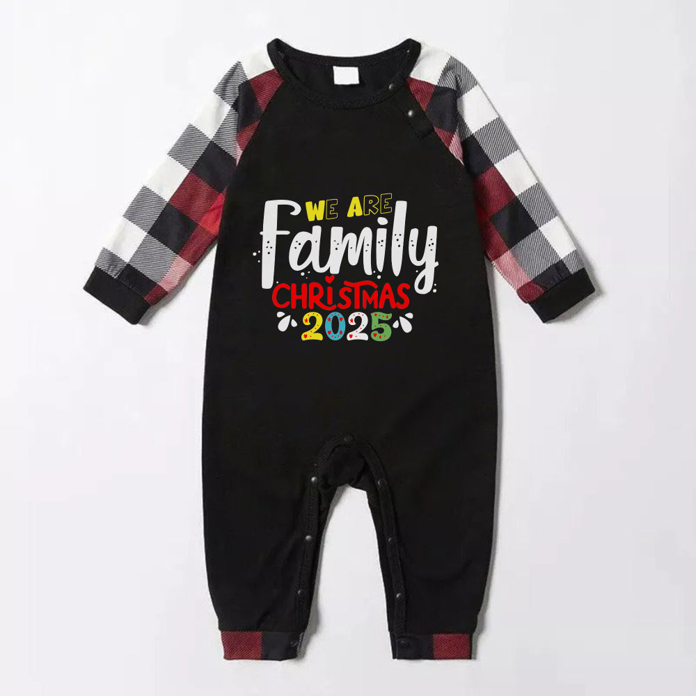 Christmas Family Matching Pajamas-Red and Gray Plaid Pjs set with "We Are Family" Christmas Slogan Print