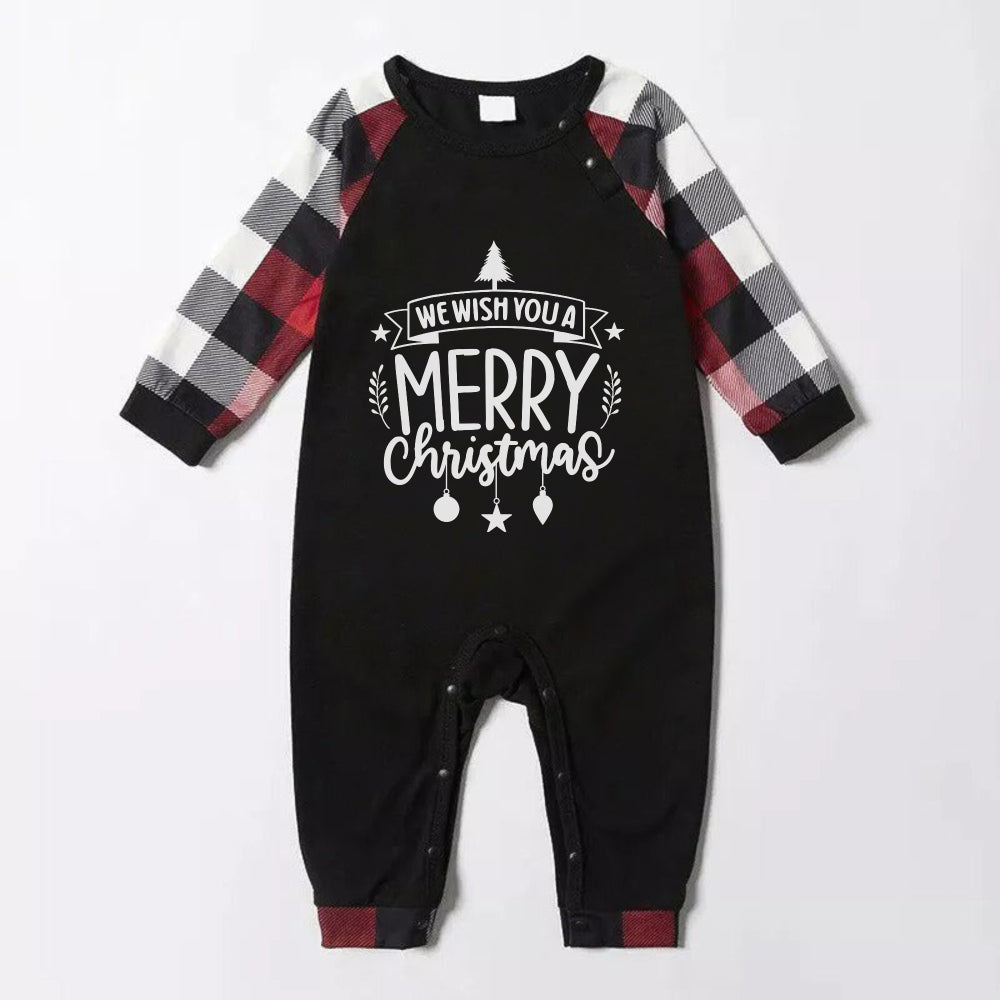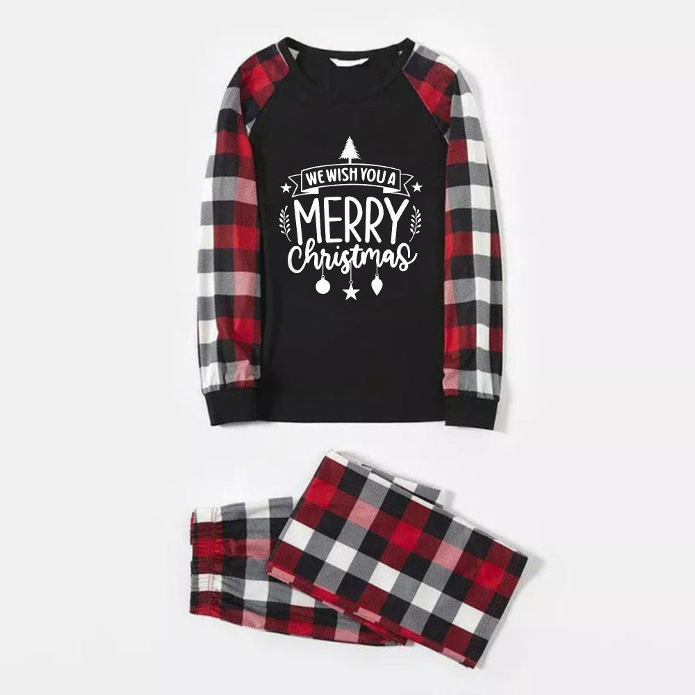 Christmas Family Matching Pajamas-Red and Gray Plaid Pjs set with "We Wish You A Merry Christmas" Print