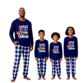 Christmas Jesus White Letter Prints Contrast Blue Long Sleeve with Blue and White Plaid Pants Family Matching Pajamas