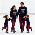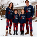 Christmas Tube and Letter Print Blue Long Sleeve Top with Red & Blue Plaid Family Matching Pajamas