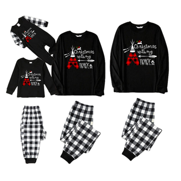 "Christmas With My Tribe" Pattern Printed- Black and White Plaid Family Matching Pajamas