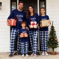 "Christmas With My Tribe" Pattern Blue Long Sleeves with Blue&White&Black Plaid Pants Family Matching Pajamas