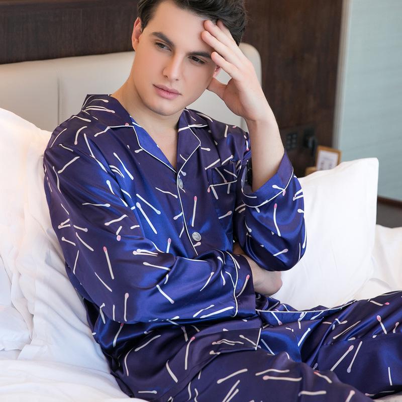 Classic Blue Satin Men Pajama Set