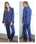 Style: two-piece satin pajamas set.