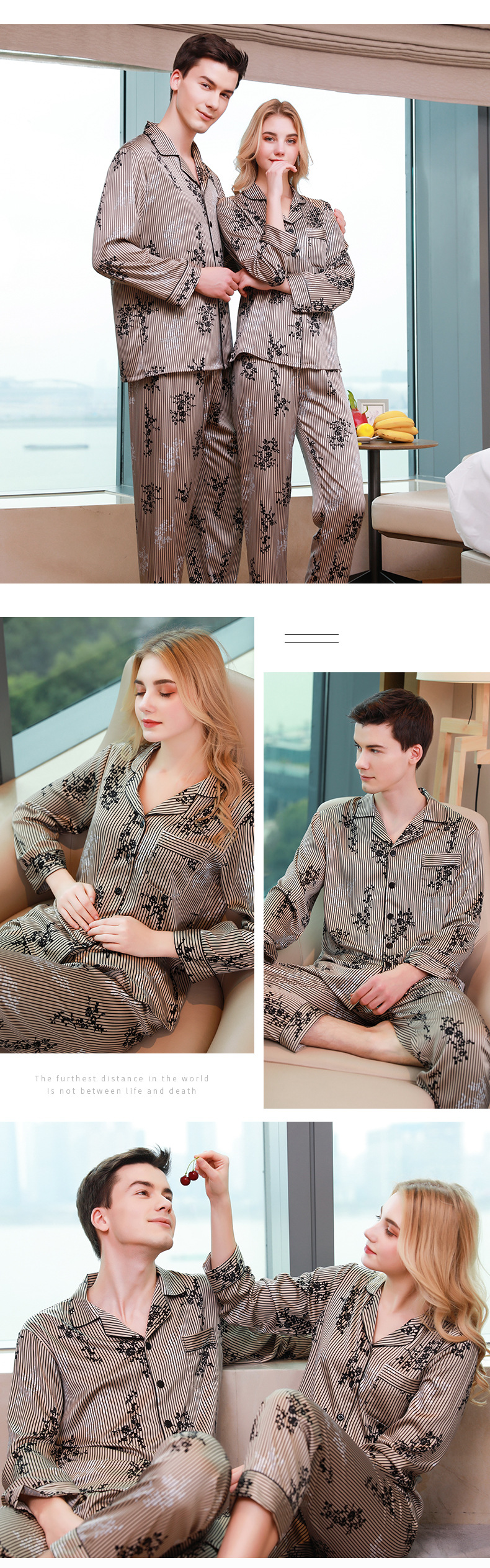 These luxurious pajamas in a timeless style will not only feel indulgent against your skin but also help you have a peaceful slumber too,Made from high quality Silk-like charmeuse, This fabric feels silky against the skin for staying in, day or night, providing you a romantic and sweet feeling in your whole life.