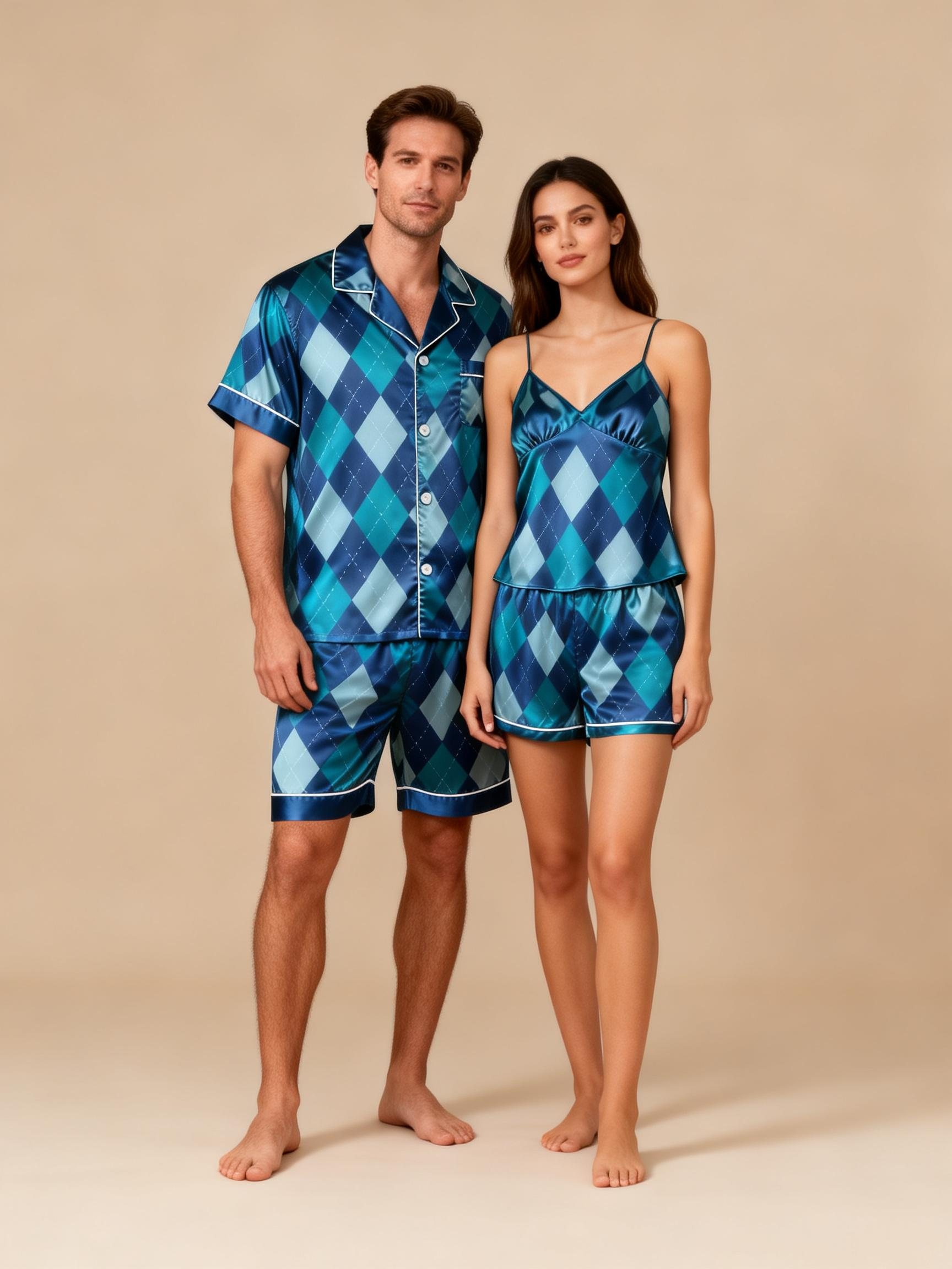 Elevate your sleepwear with our Couple Classic Satin Pajamas Short Set. Designed for comfort and style, this matching set includes: