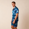 For Him: A lapel collar button-up short-sleeve top and shorts.