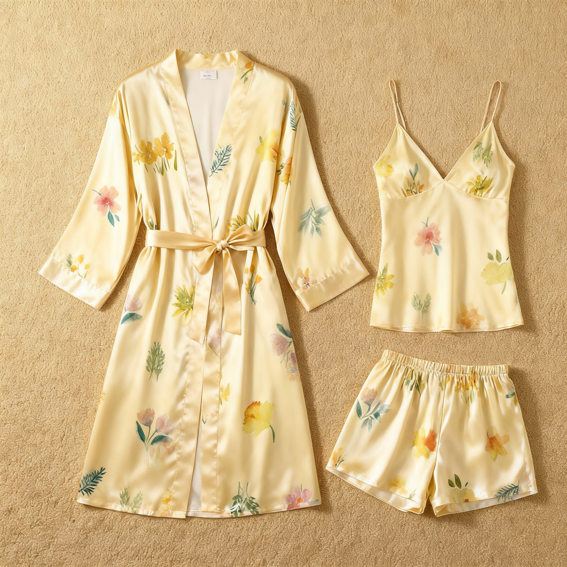 Elegant Printed Satin Pajama Set – 3 Pieces Lounge Set for Women