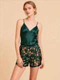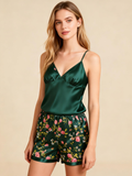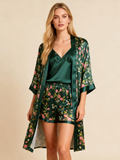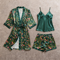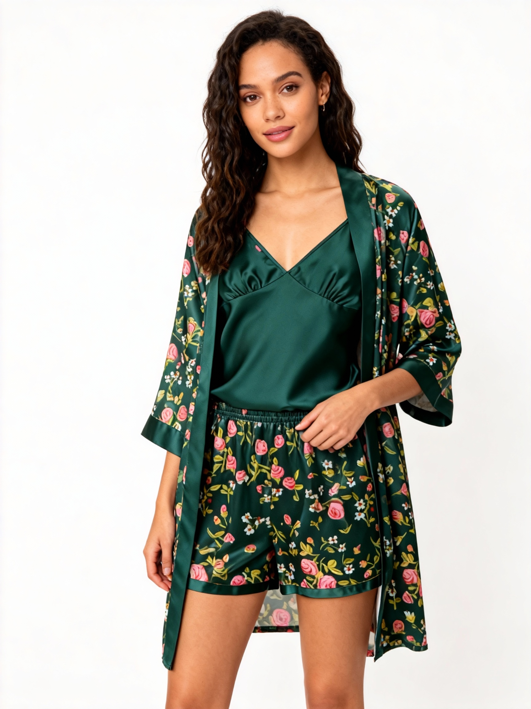 Elegant Satin Loungewear Trio in Vintage Green Style