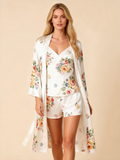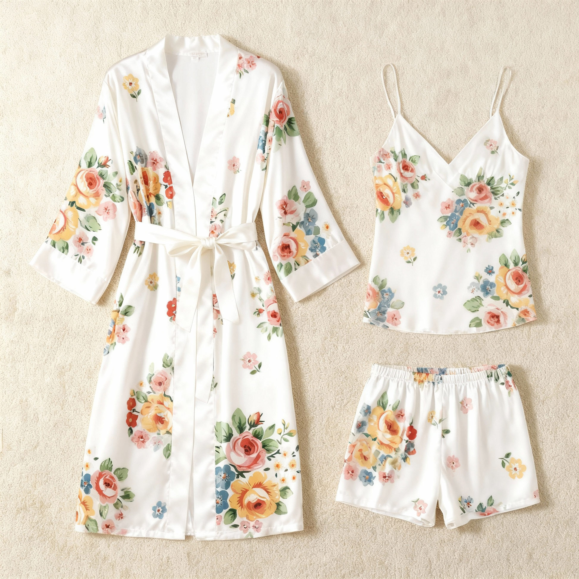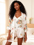 Elegant Satin Loungewear Trio with Classic Ornate Blossom Motif