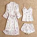Elegant Satin Loungewear Trio with Soft Florals Print