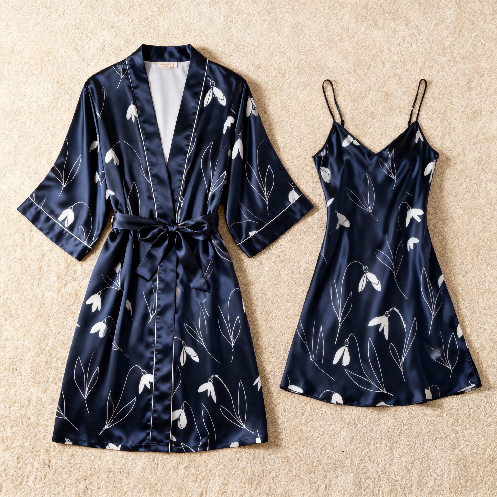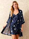 Elegant Satin Robe Set with Bloom Patterns
