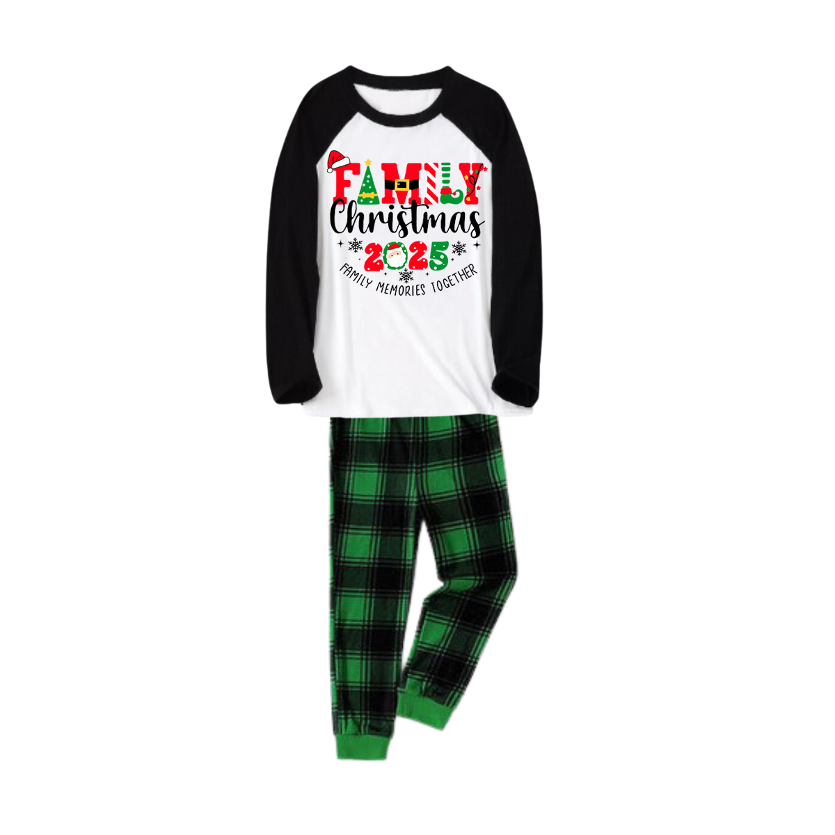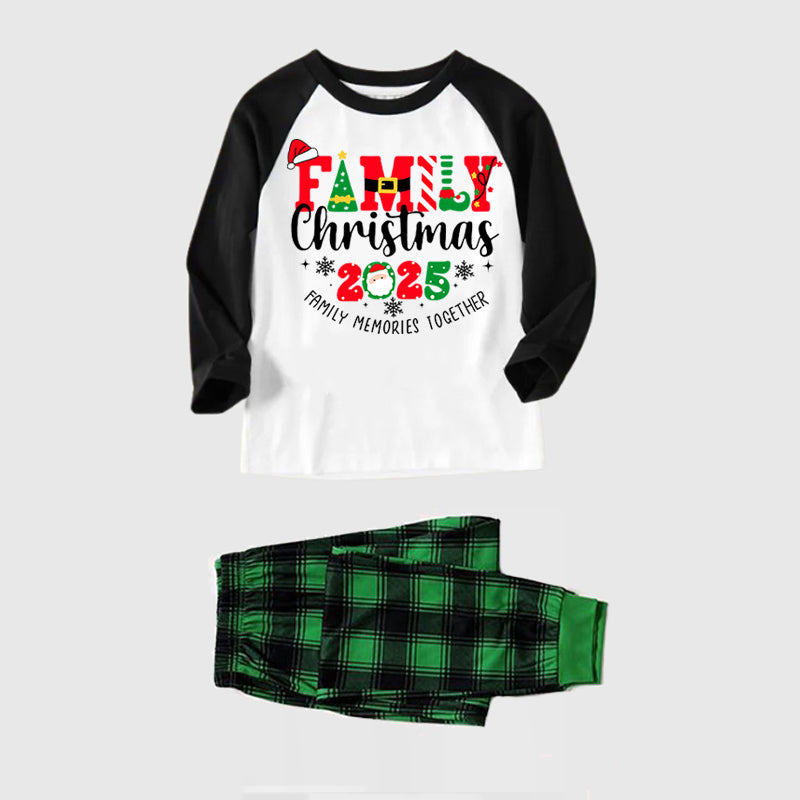 "Family Christmas 2025 Making Memories Together" Cute Christmas Elements Printed Green and Black Plaid Christmas Family Pajamas