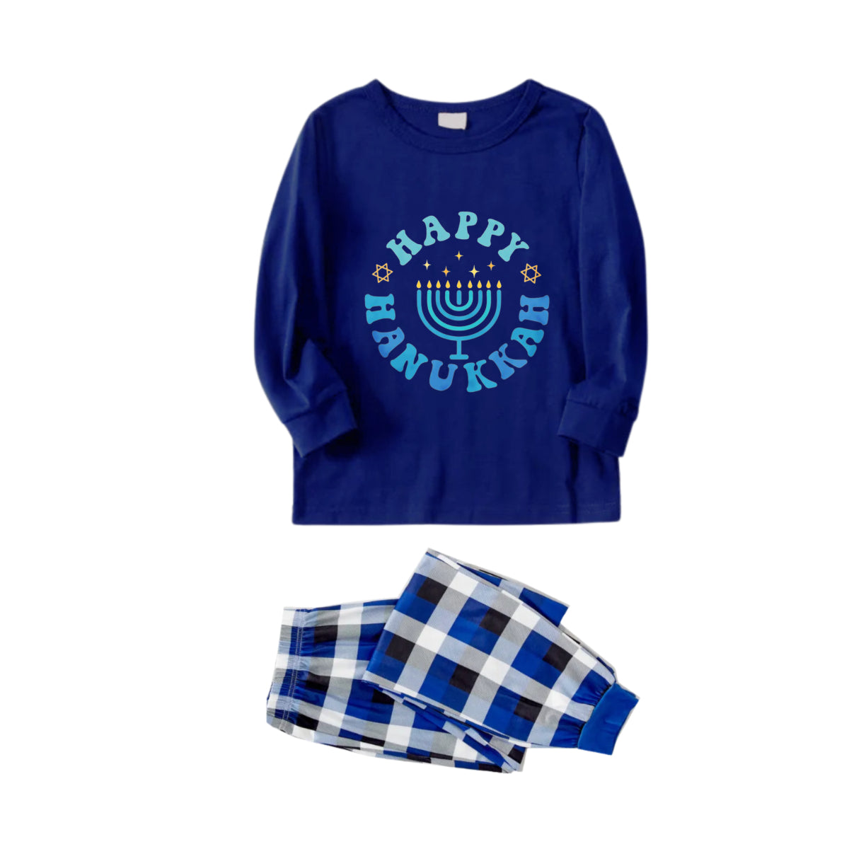 Family Happy Hanukkah Blue&White Plaid Matching Pajamas