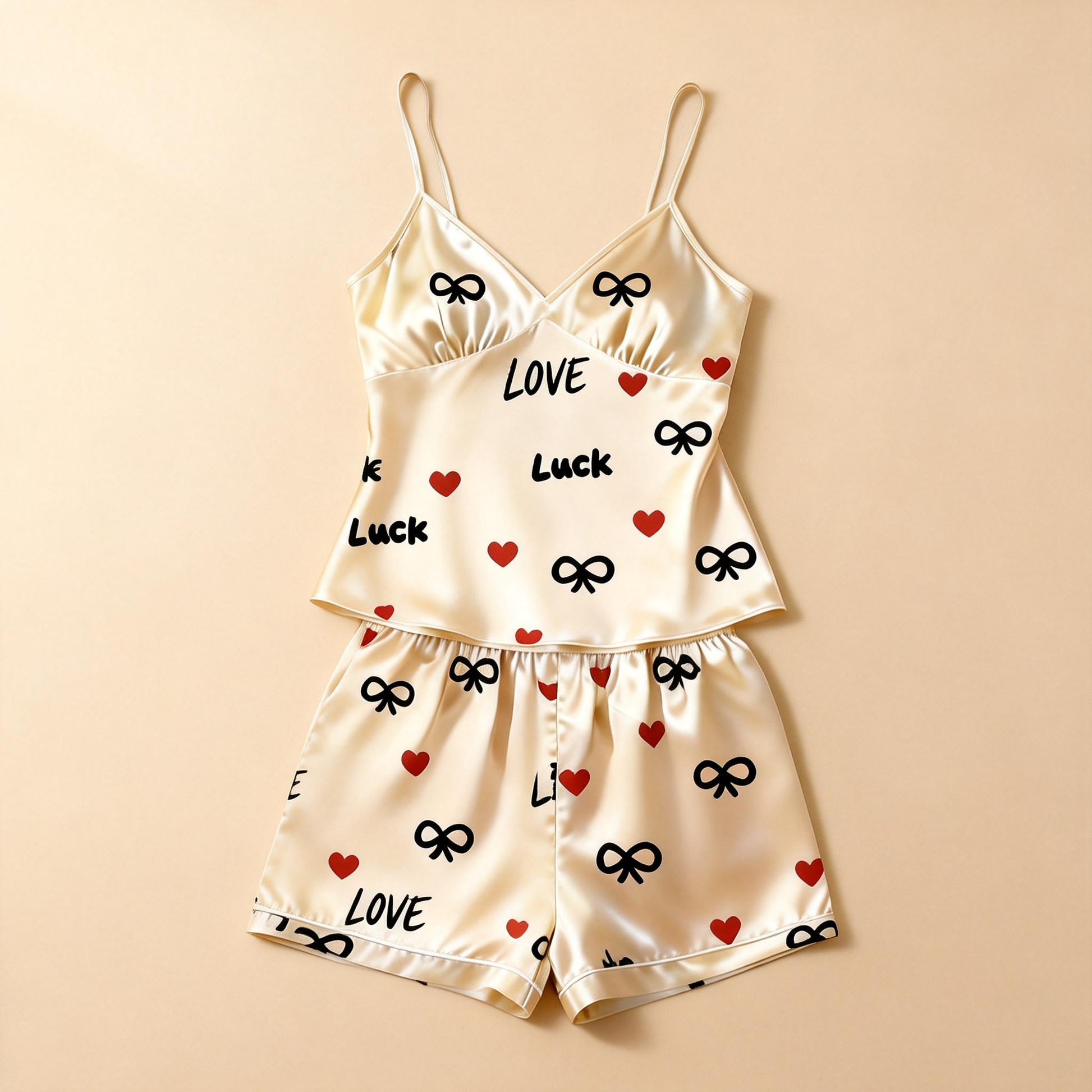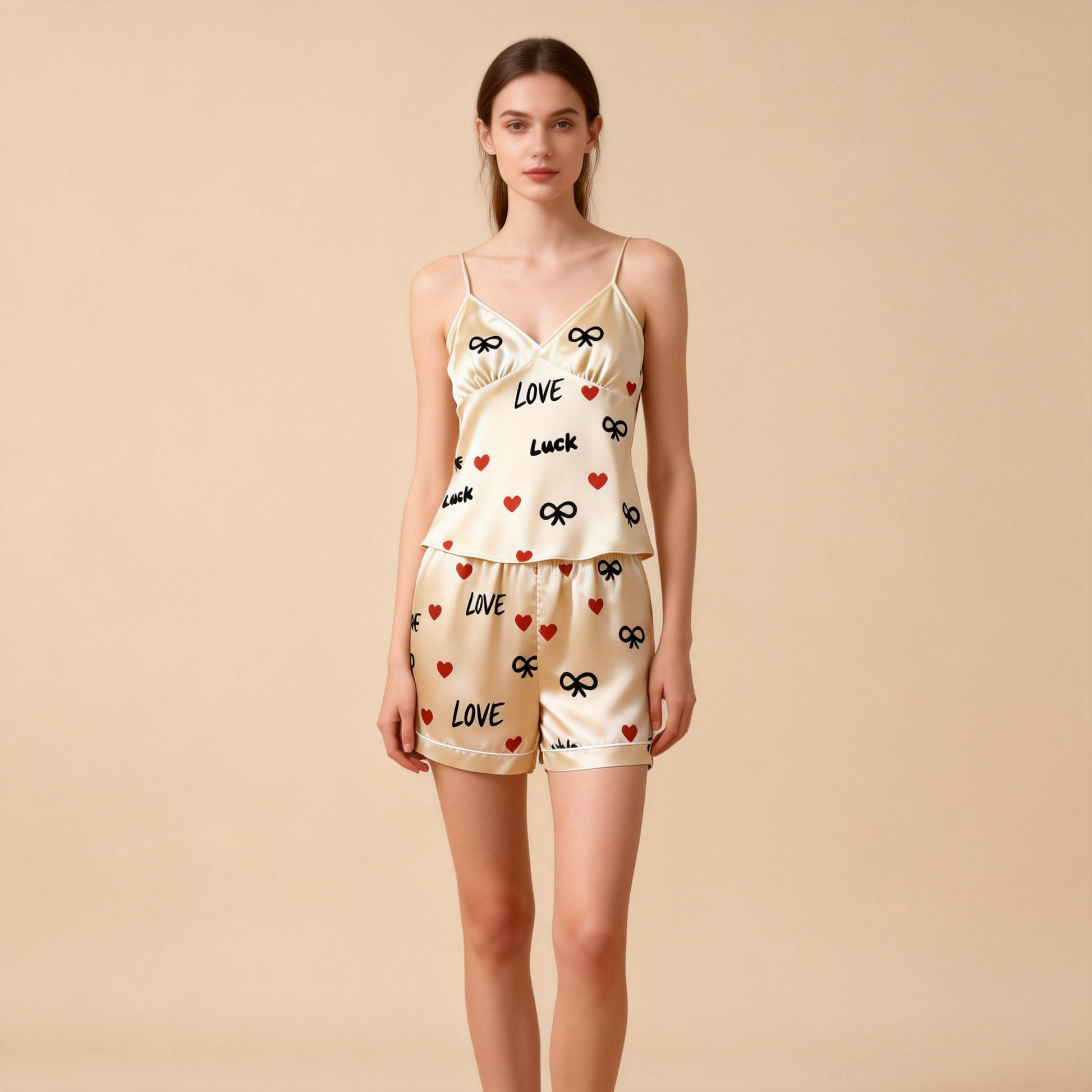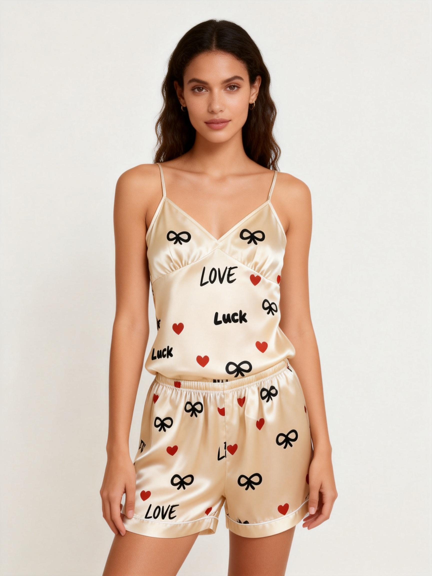 Slip into effortless comfort and a sleek, glossy look with this women’s satin pajama short set. Designed for relaxing nights and cozy mornings, this two-piece set features a satin cami top and matching shorts for a lightweight, breathable feel. The cami top comes with adjustable spaghetti straps, allowing you to customize the fit and strap length for added comfort and support.