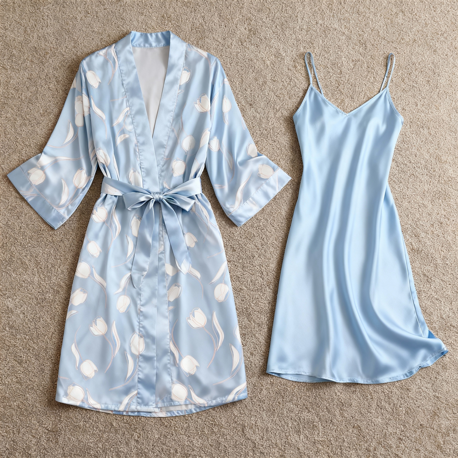 Thoughtful Details: The robe includes a matching self-tie belt for a customizable wrap, and both pieces are finished with fine stitching for durability and a polished look.