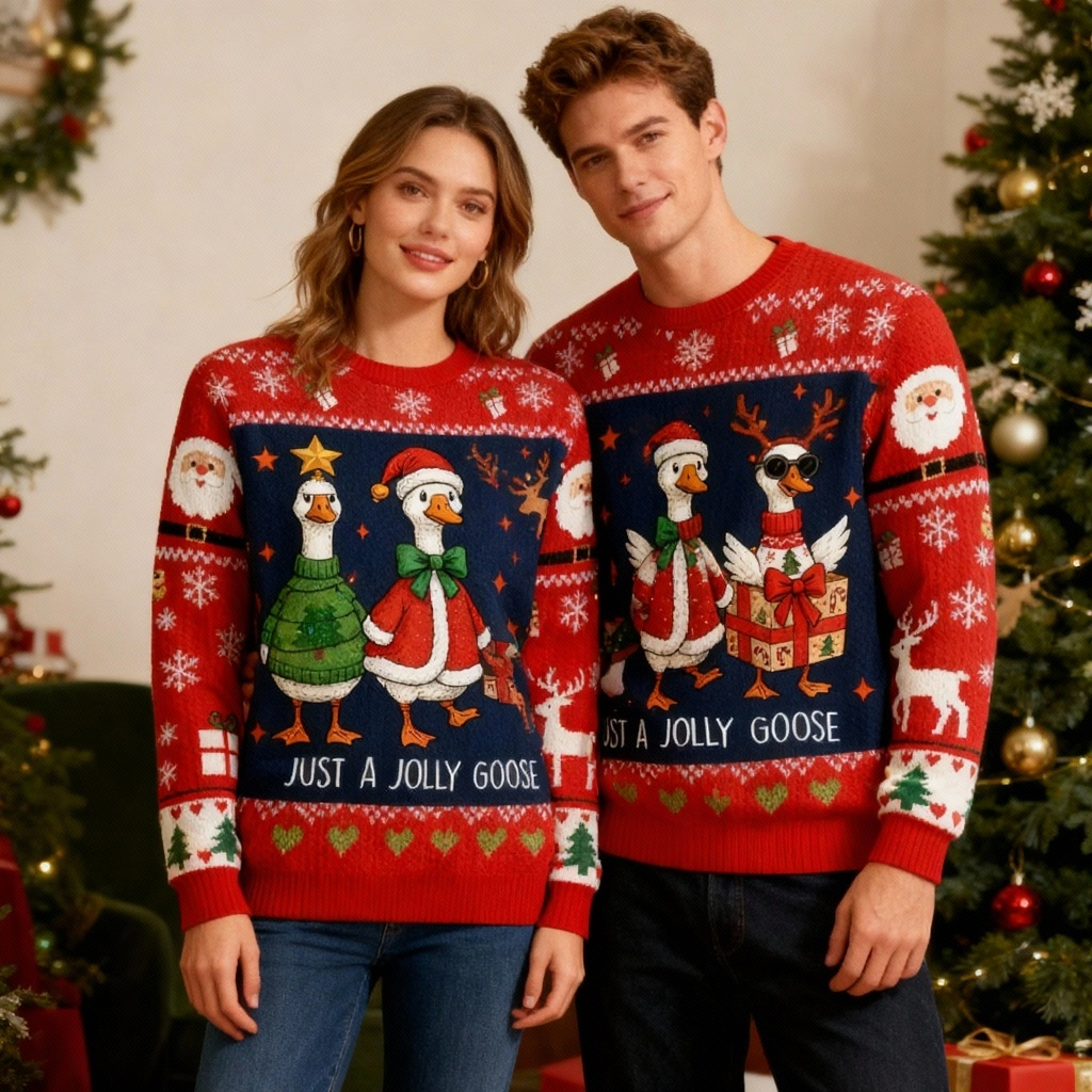 Goose Cartoon Pattern Ugly Sweater - Unisex Christmas Party Essential