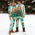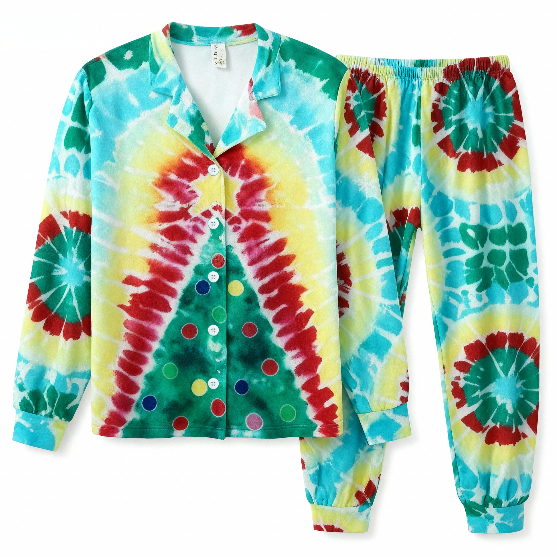 Holiday Couple Button-Up Green & Yellow Tie-dyed Christmas Pajamas Set