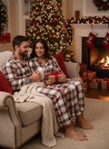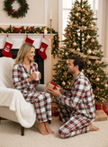 Holiday Couple Red Plaid Button-Front Christmas Pajamas Set