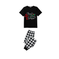 Jesus Is The Reason For The Season Cross Family Christmas Pajamas Set - Black Top Black and White Plaid Pants Red Plaid Cross Graphic