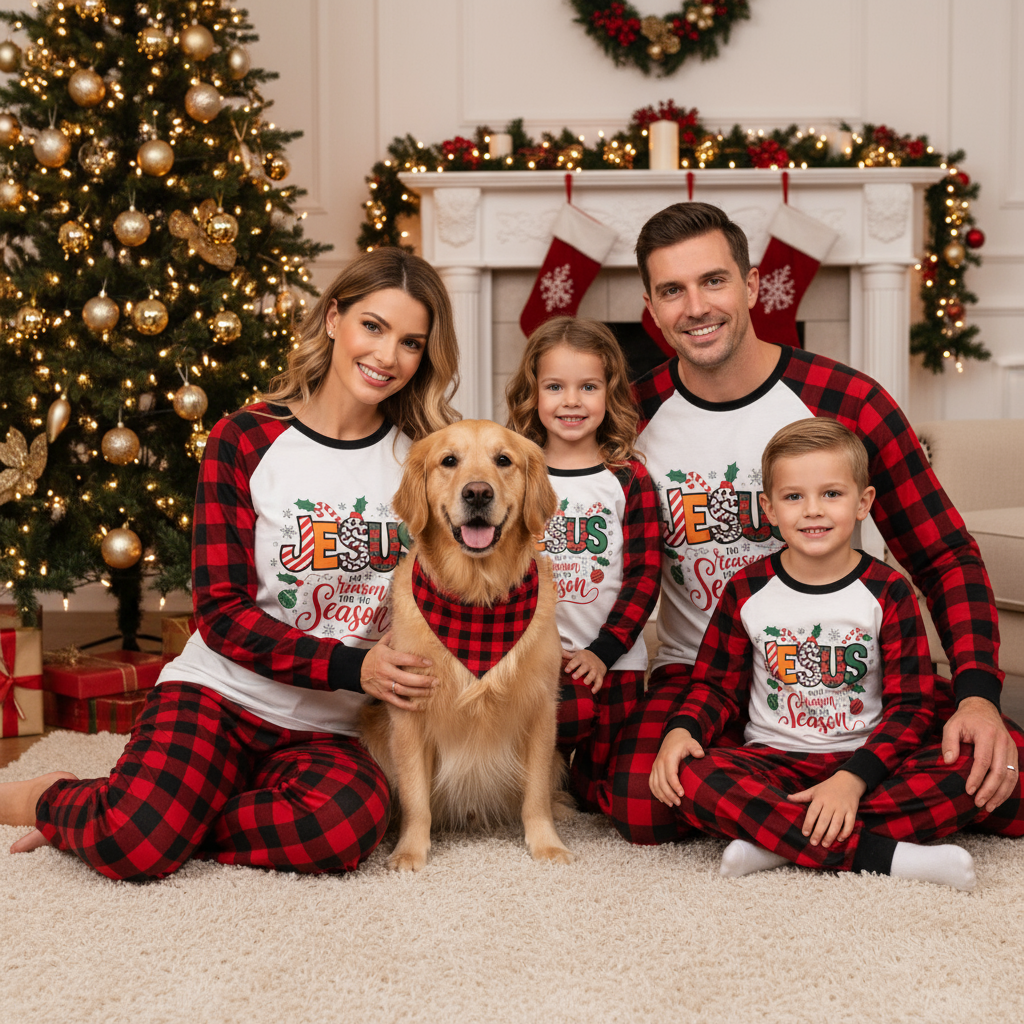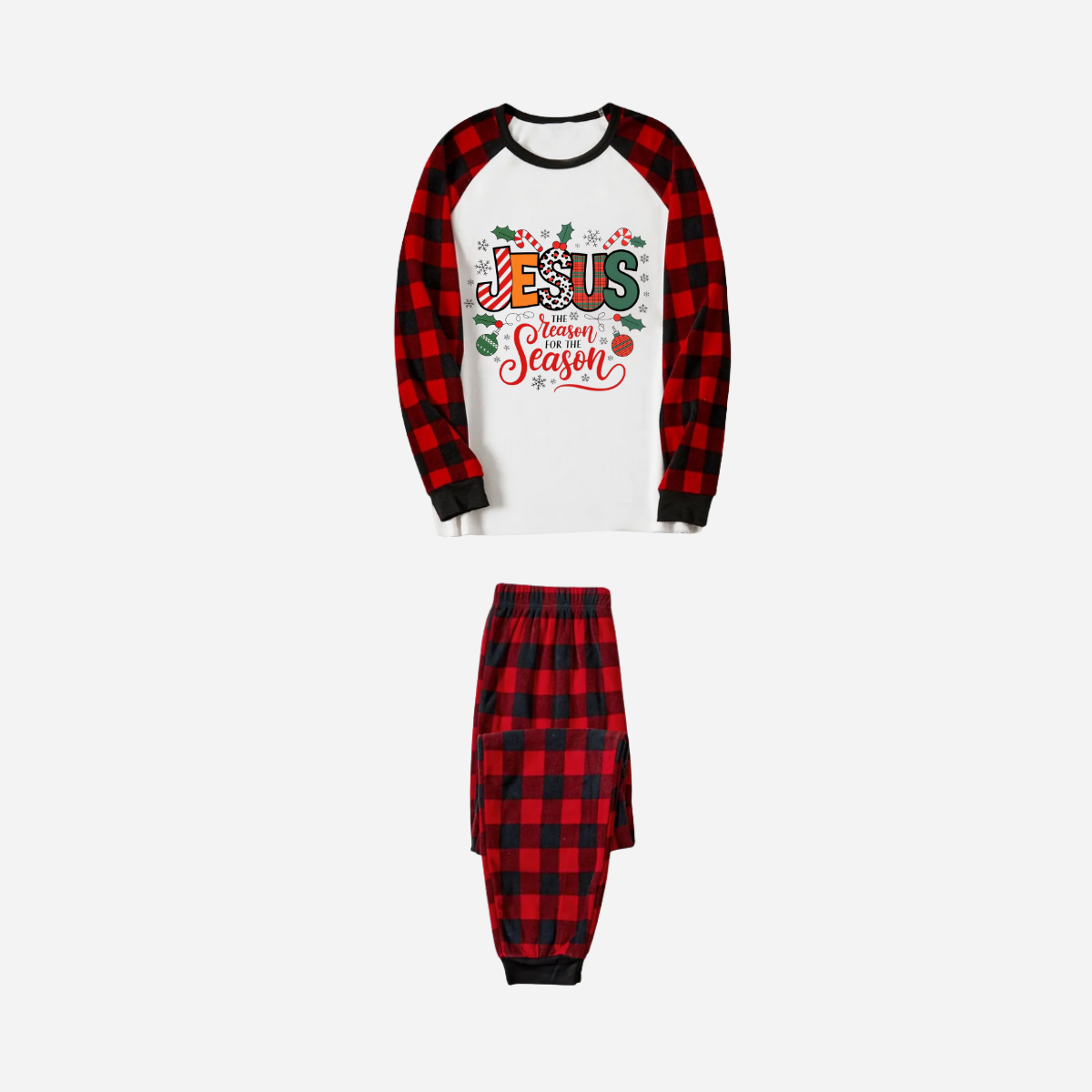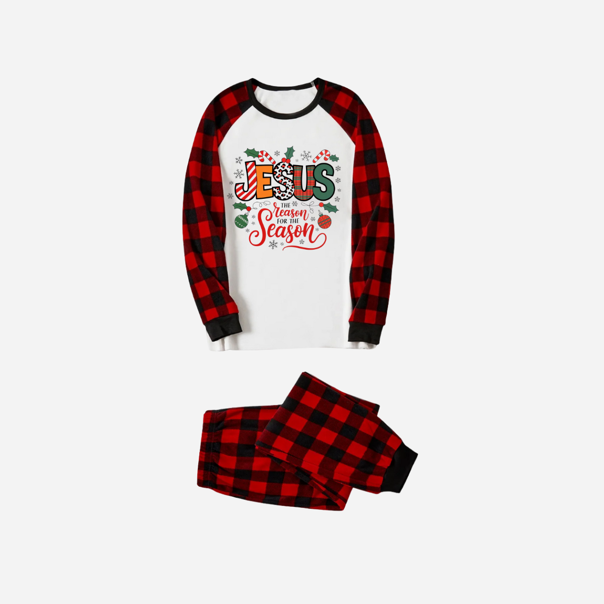 "Jesus is the REASON for the Season" Matching Christmas Pajamas Set - Black and Red Plaid Pajamas