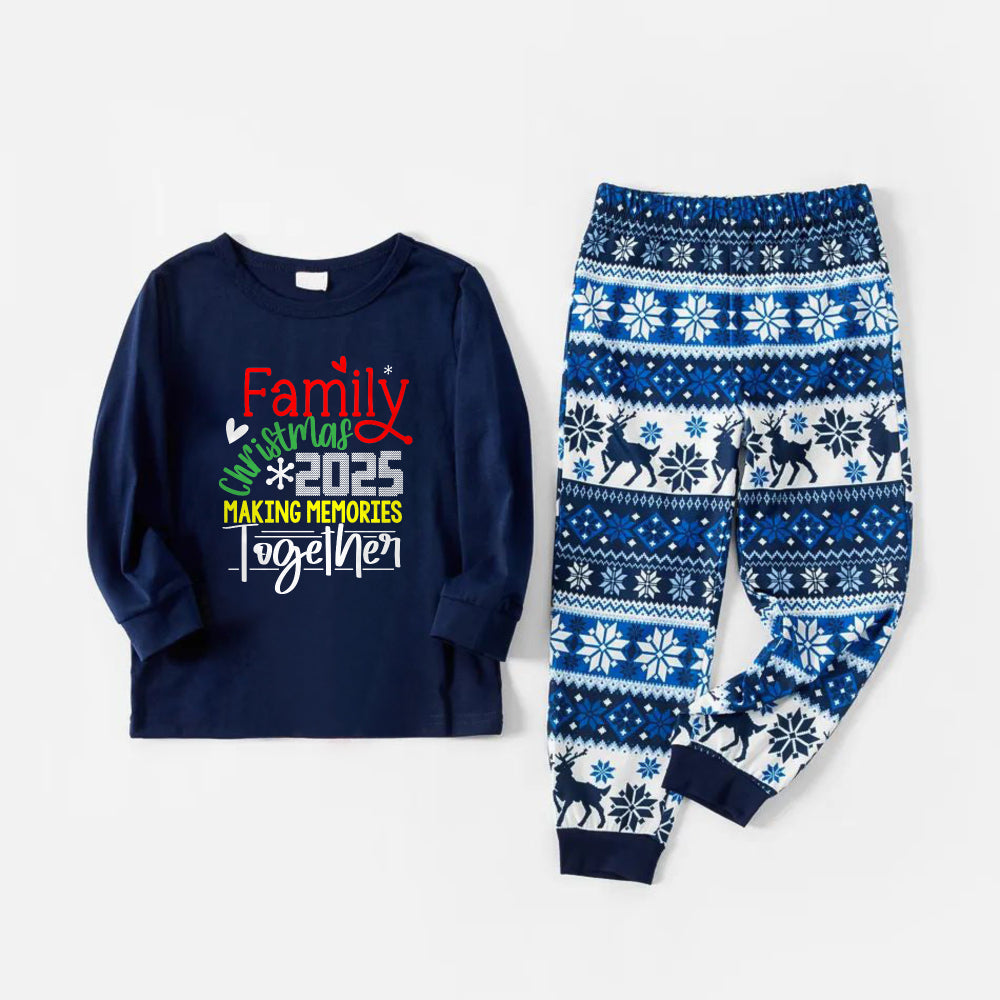 Joyful Blue Christmas Pajamas Set Featuring Christmas Cheer Text Prints