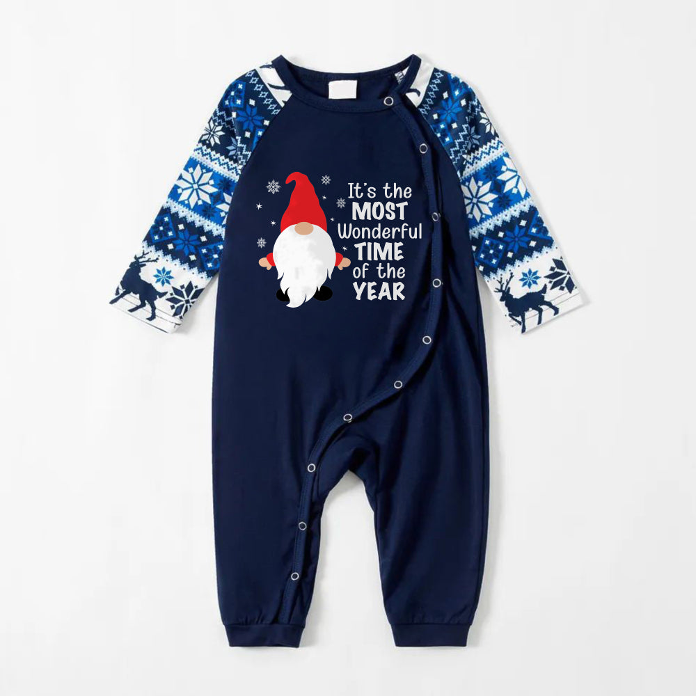 Joyful Blue Christmas Pajamas Set Featuring Gnome with Santa Quotes
