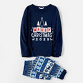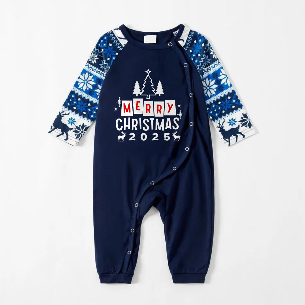 Joyful Blue Christmas Pajamas Set With Christmas Tree and Holiday Slogan