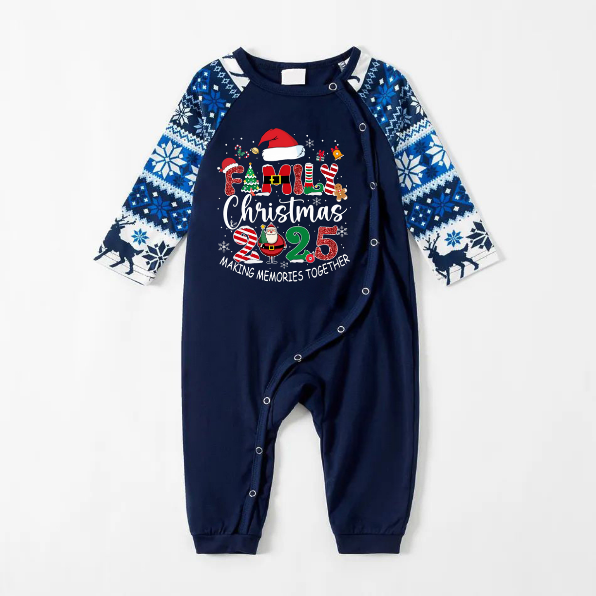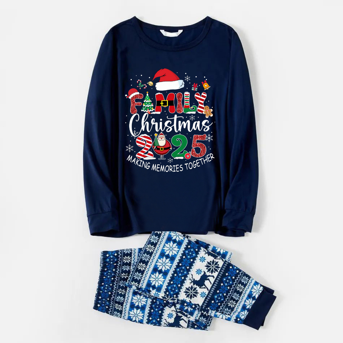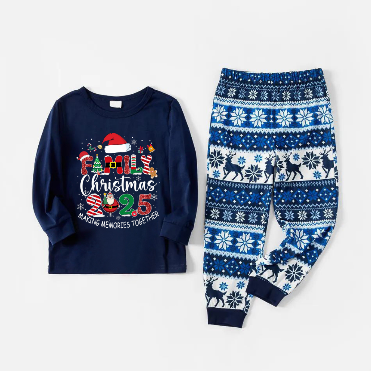 Joyful Blue Christmas Pajamas Set With "Family Christmas 2025 Making Memories Together" Text Print