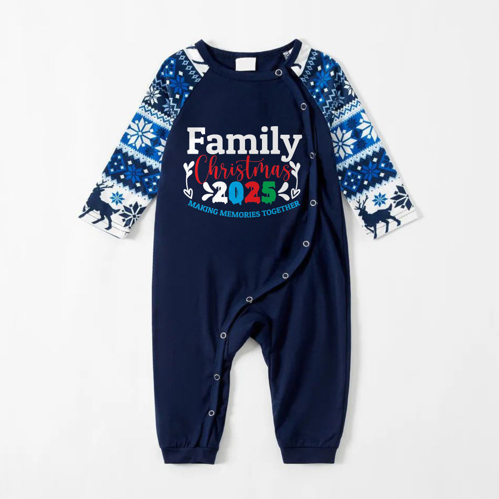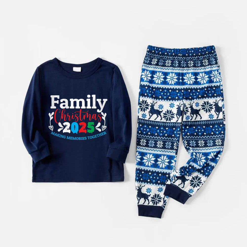 Joyful Blue Christmas Pajamas Set With Family Christmas Phrases