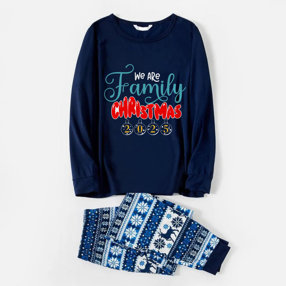 Joyful Blue Christmas Pajamas Set With Family Holiday Quotes