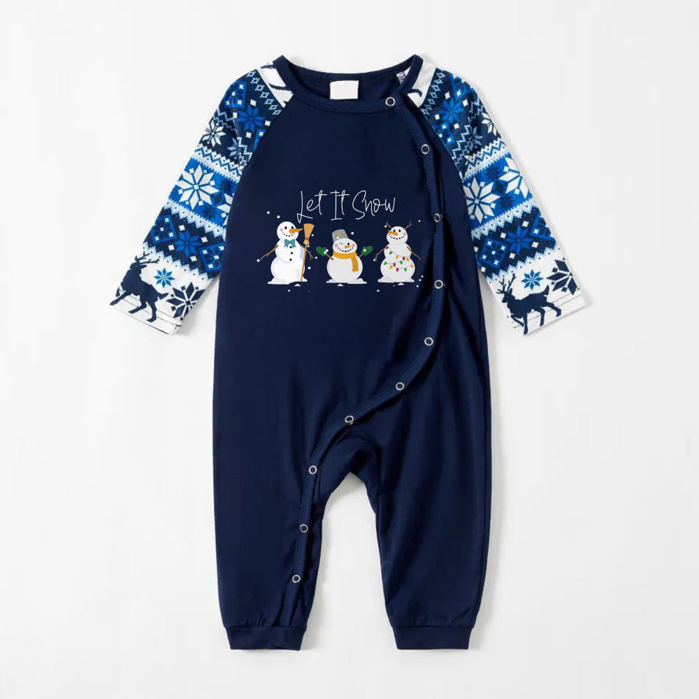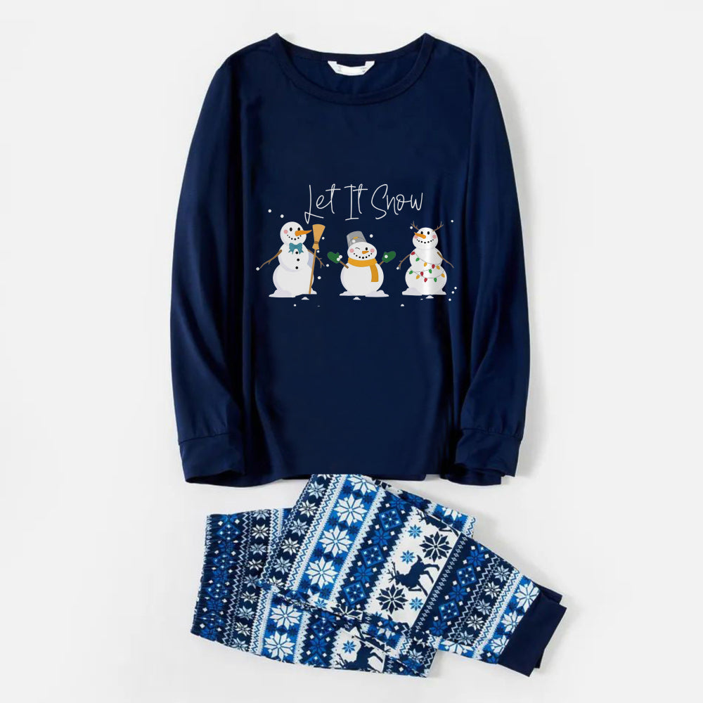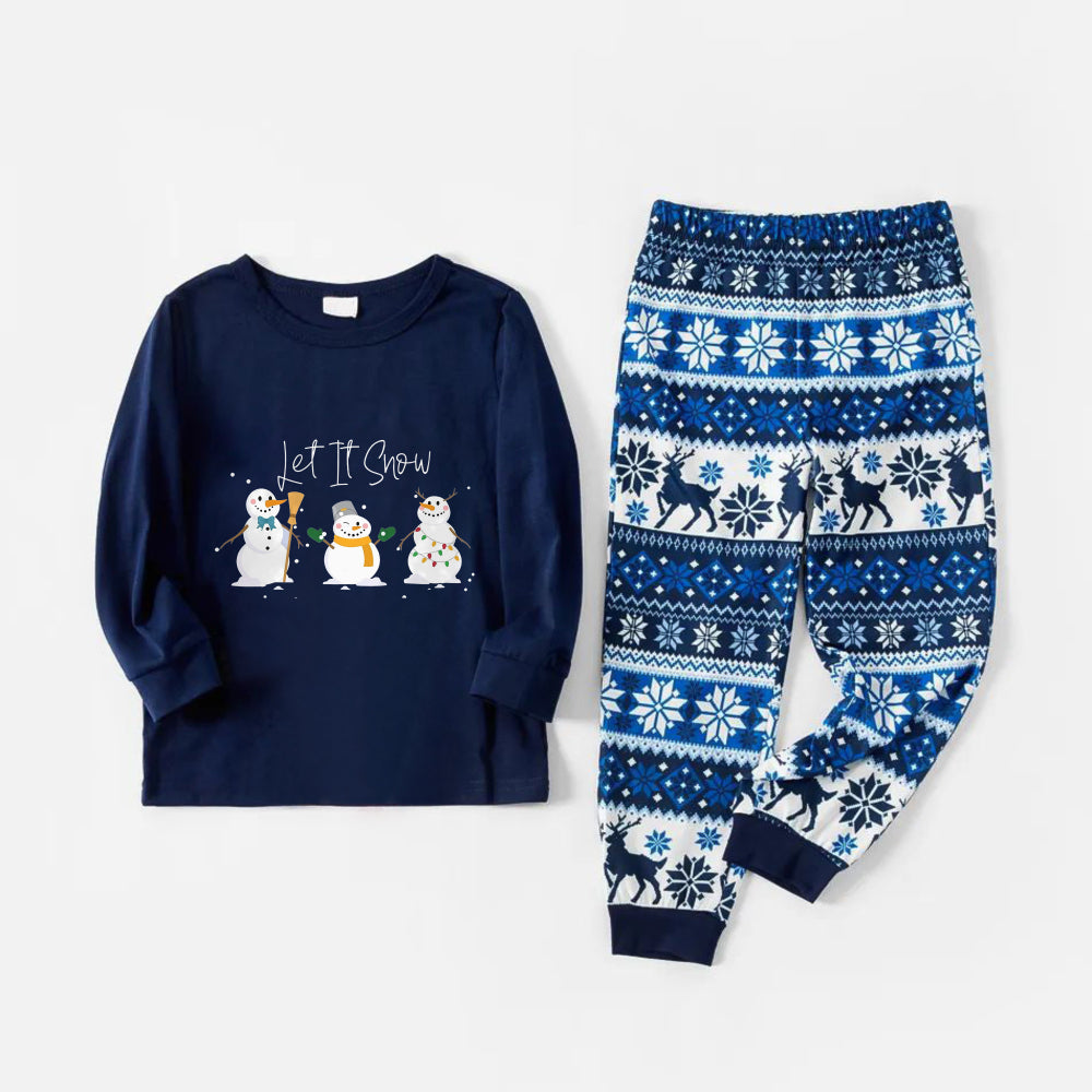 Joyful Blue Christmas Pajamas Set With Snowman and Cheer Text Prints