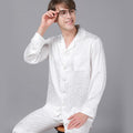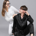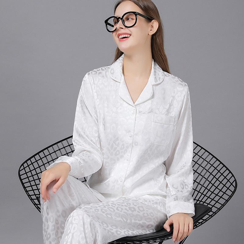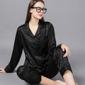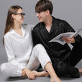 Style: two-piece satin pajamas set.