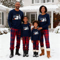 "Let it Snow" Slogan and Snowman Printed Red and Blue Plaid Christmas Matching Pajamas
