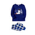 Couple Matching Blue and White Plaid Pajamas With "Let it Snow" Text and Snowman Printed