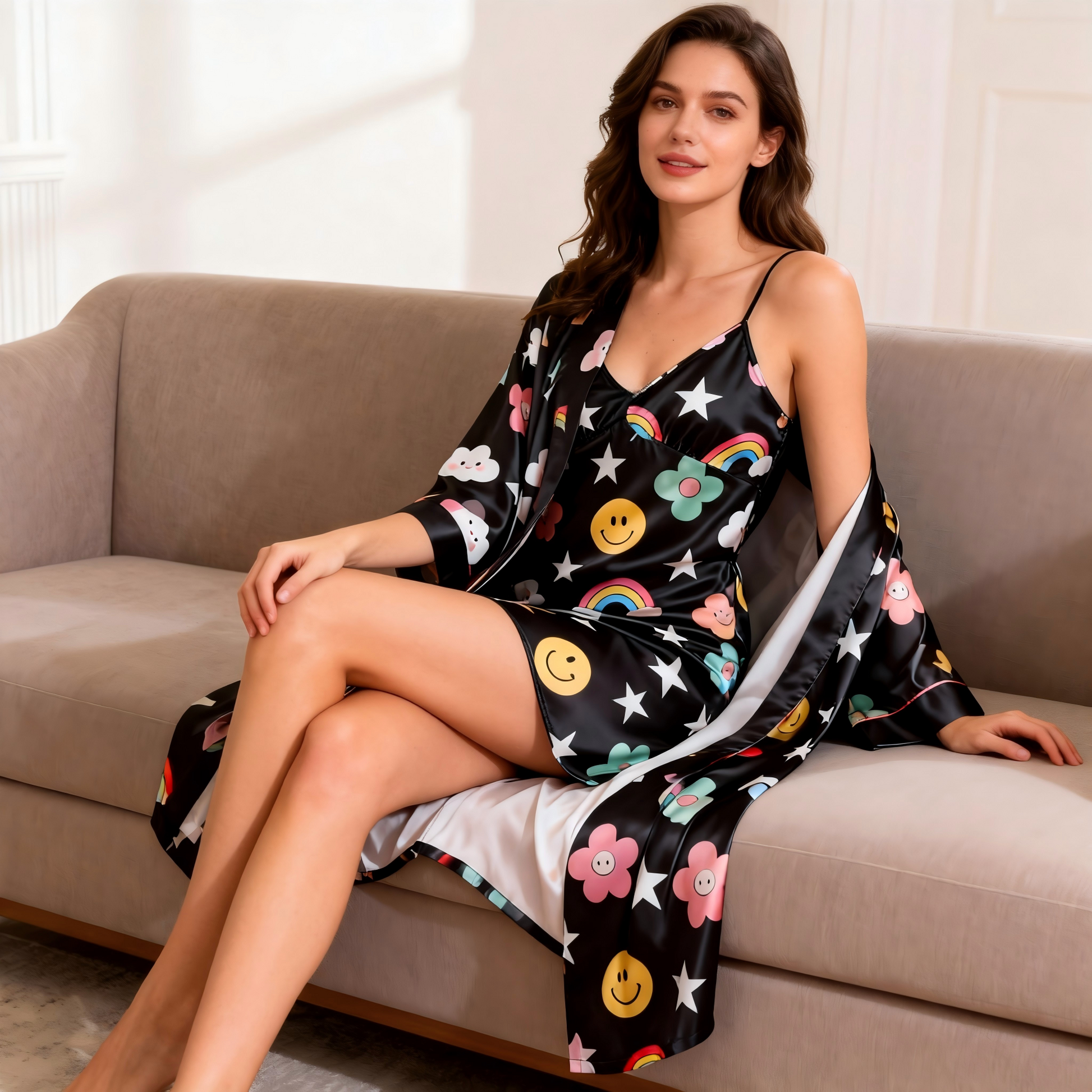 Versatile Wear: Perfect as luxurious sleepwear, a stylish loungewear set for lazy weekends, or even as a elegant cover-up. It’s an ideal choice for honeymoons, spa days, or simply feeling pampered at home.