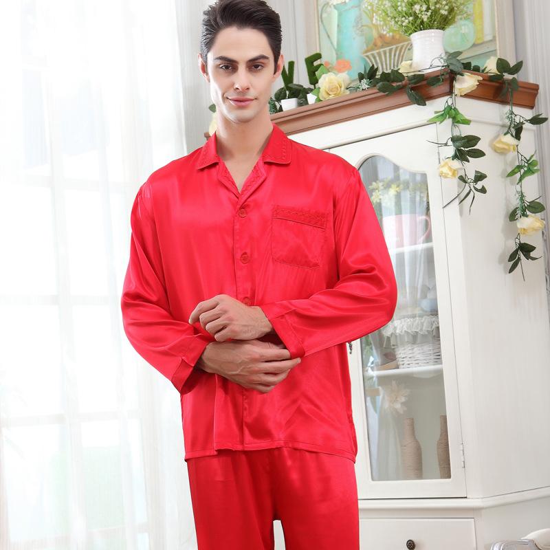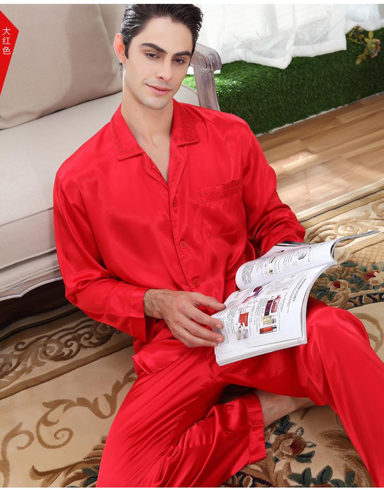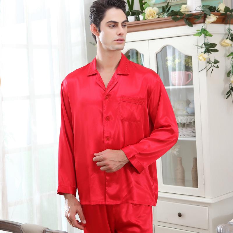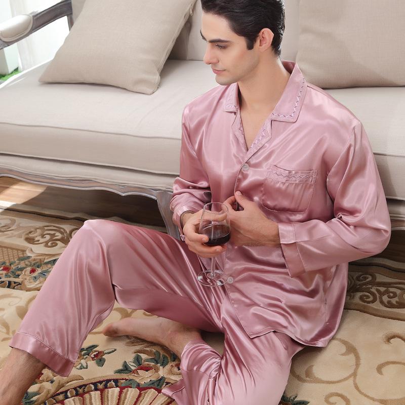 Luxurious Satin Men's Lapel Pajamas 2Pcs