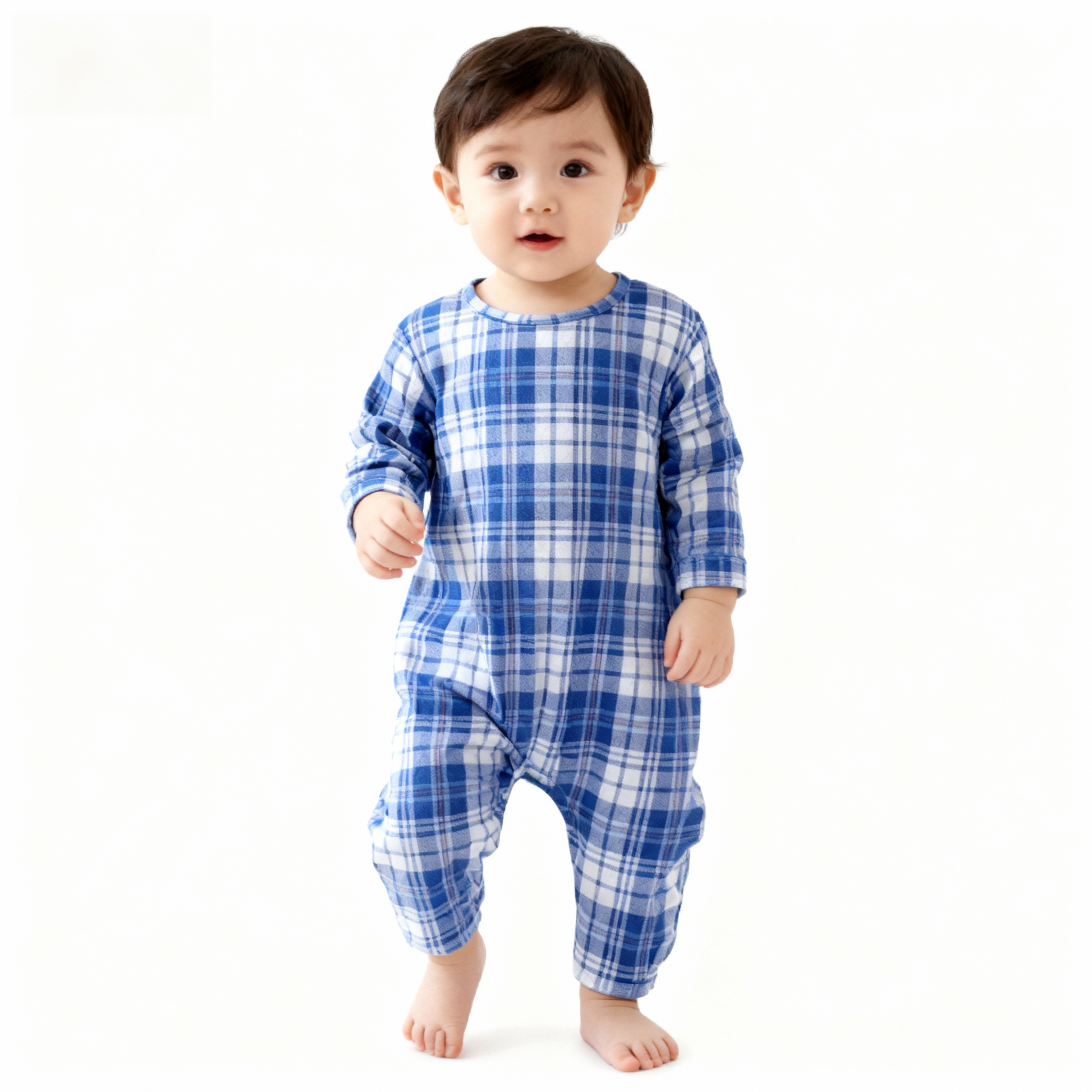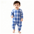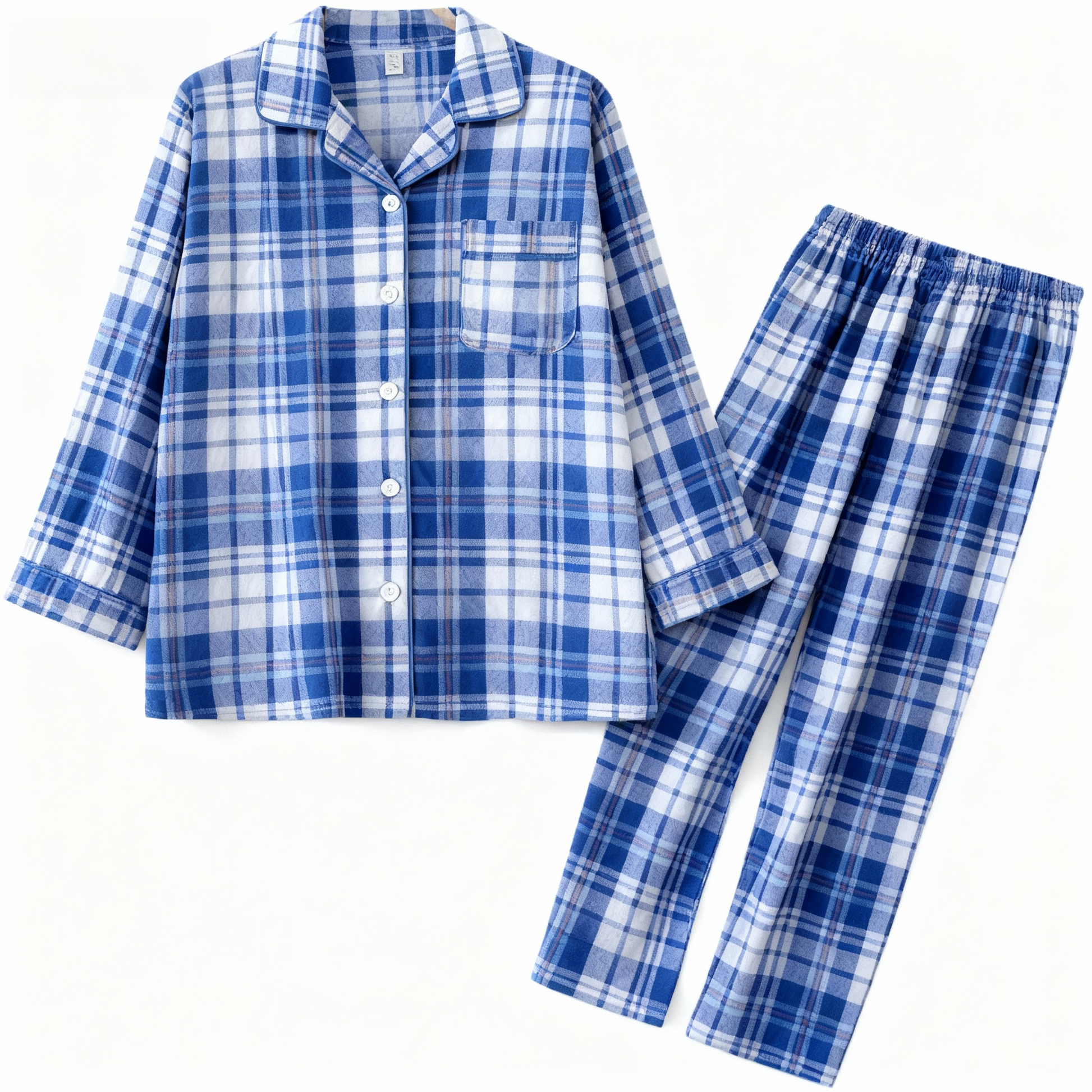 Matching Family Sleepwear Blue White Plaid Christmas Pajamas Set