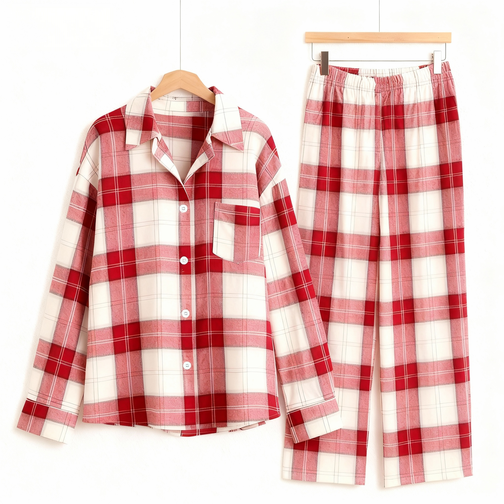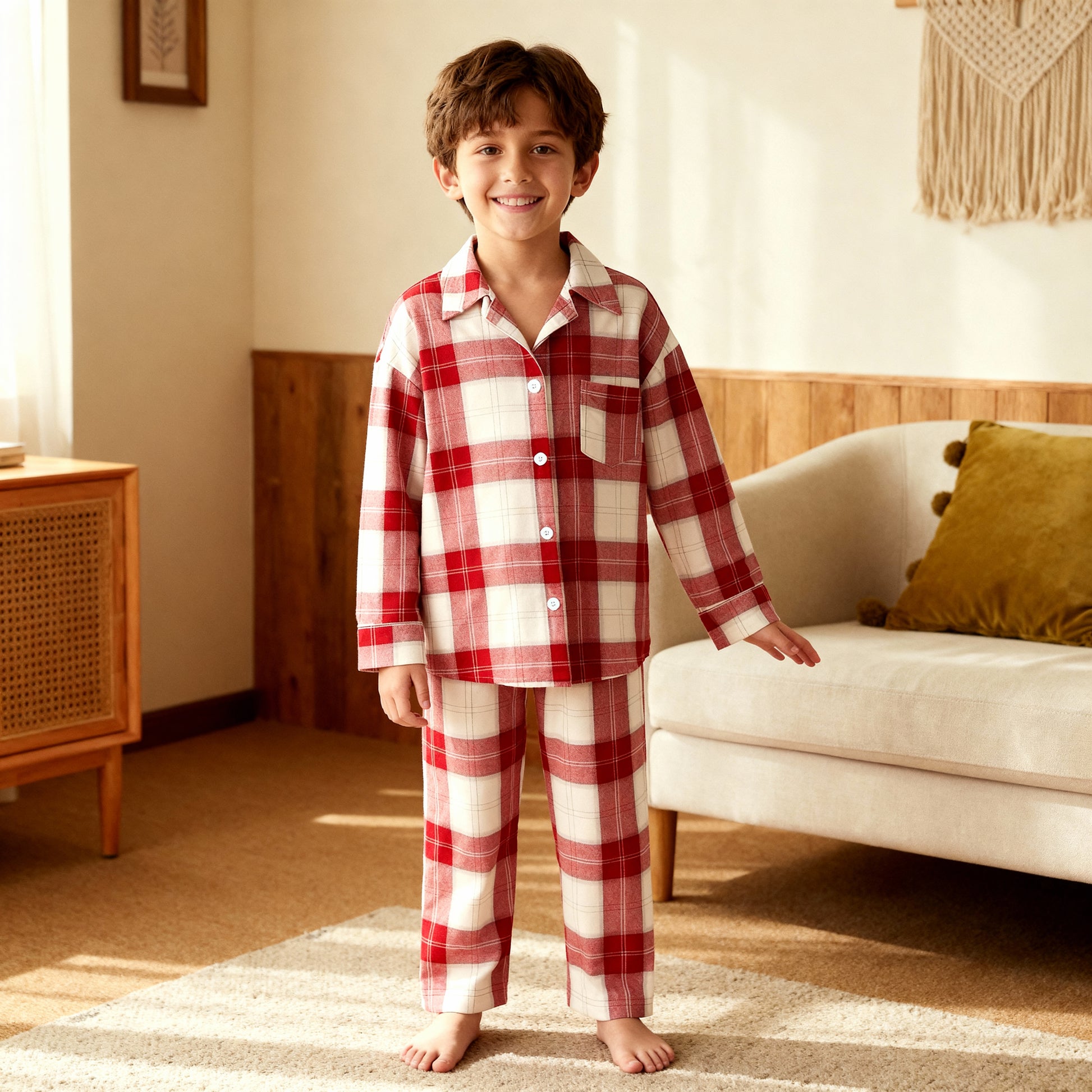 Matching Family Sleepwear Red White Plaid Christmas Pajamas Set