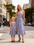 Matching Mother-Daughte Striped Cotton Midi Dress