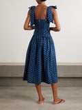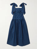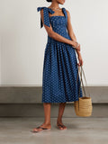 Matching Mother-Daughter Blue Polka-Dot Cotton Midi Dress