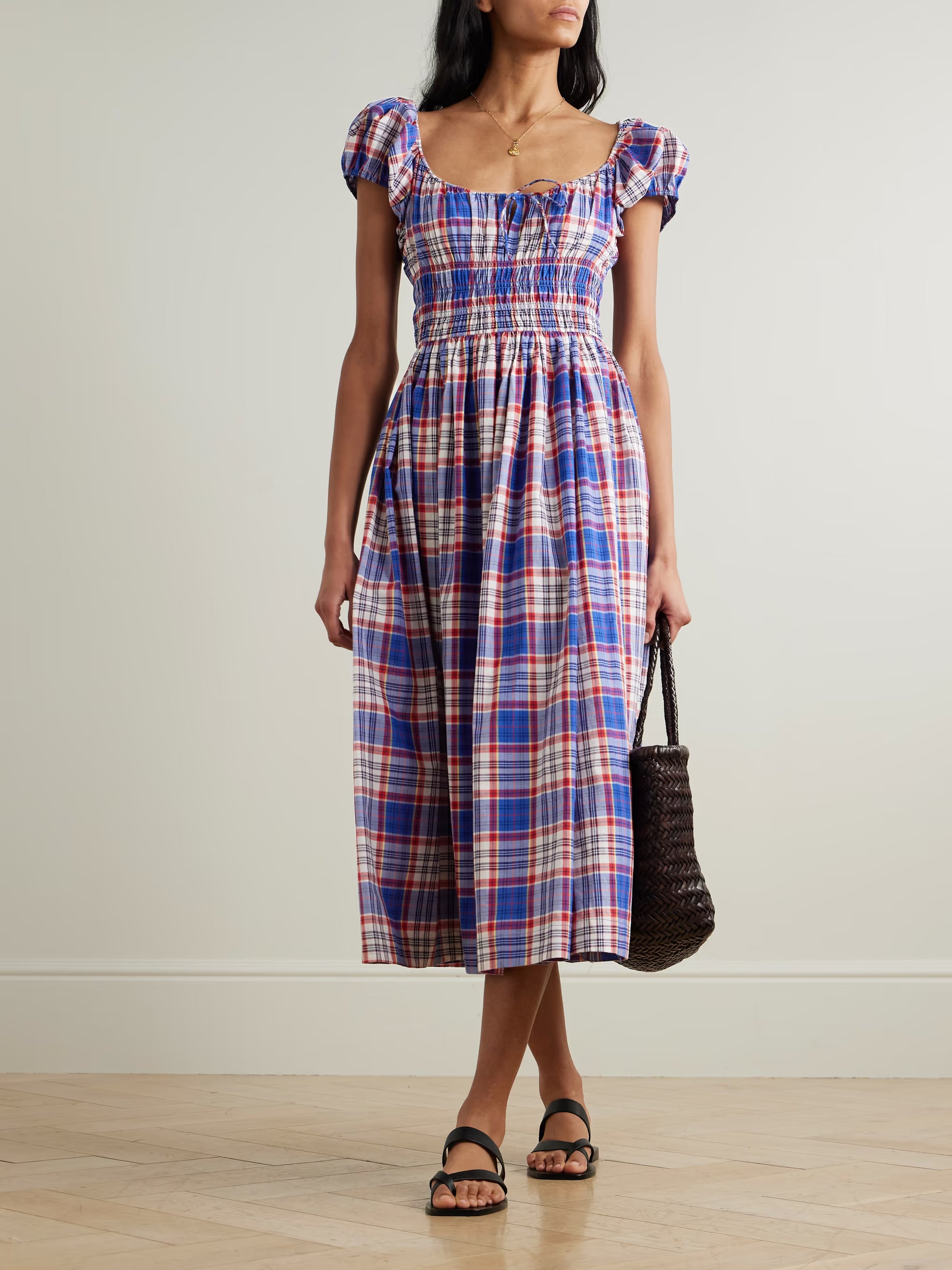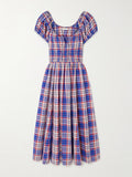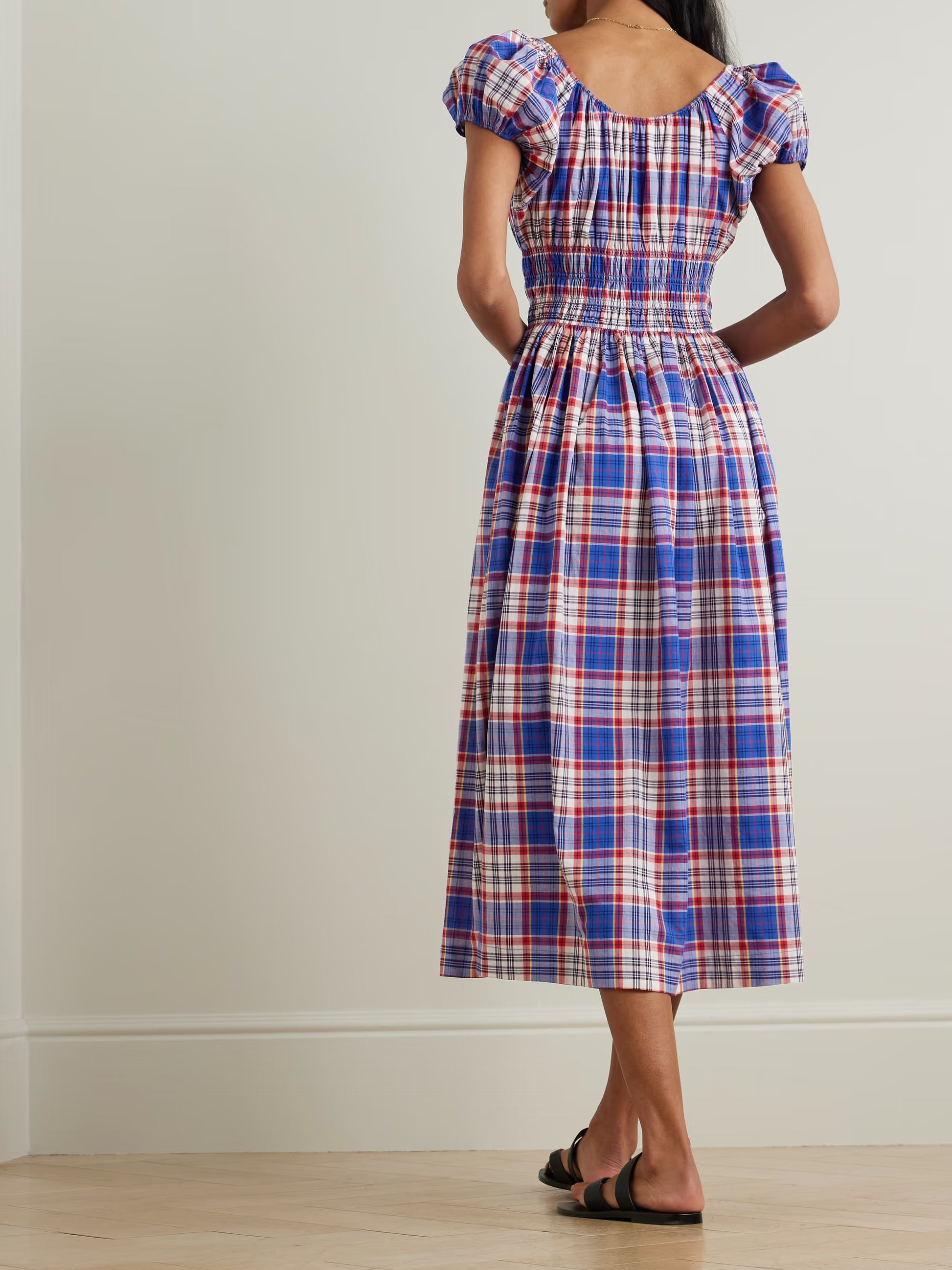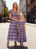 Matching Mother-Daughter Checked Shirred Cotton Midi Dress