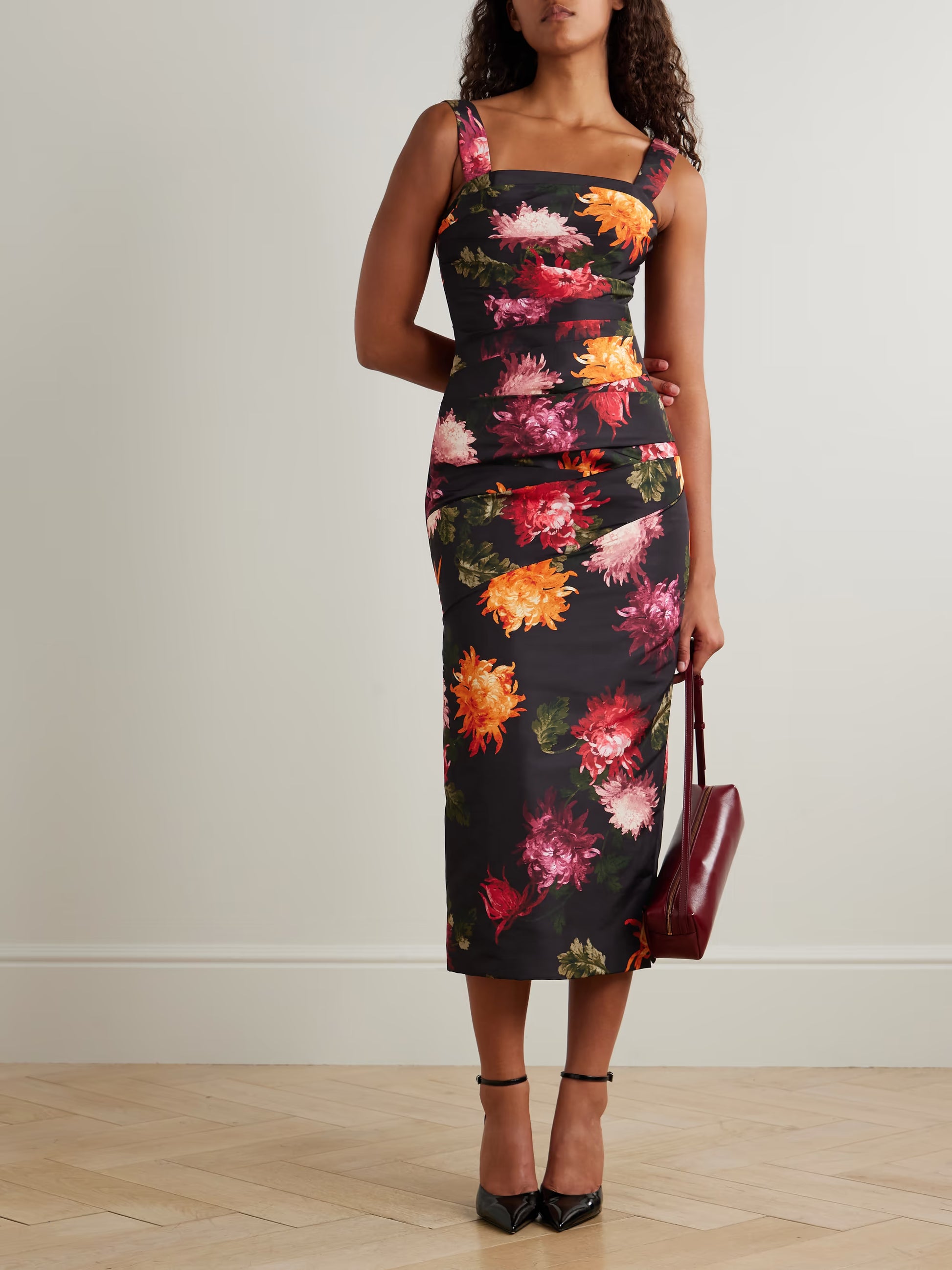 Matching Mother-Daughter Draped Floral-print Cotton Dress