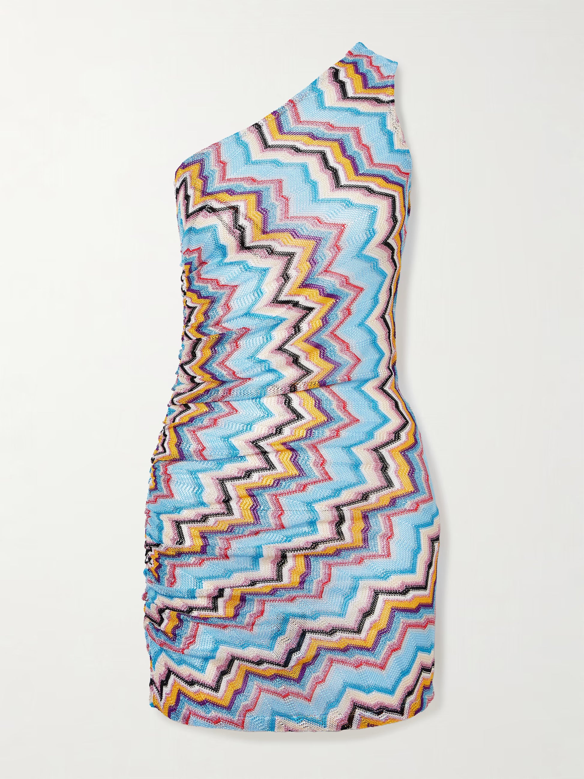 Matching Mother-Daughter One-shoulder Striped Crochet-knit Mini Dress