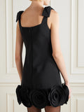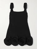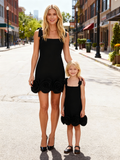 Matching Mother-Daughter Solid Black Floral-print Mini Dress