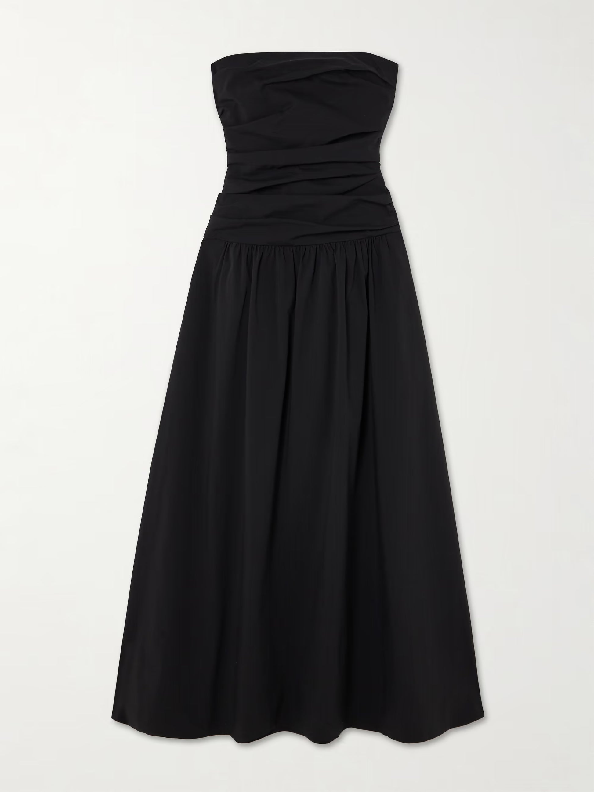 Matching Mother-Daughter Solid Black Strapless Cotton Maxi Dress