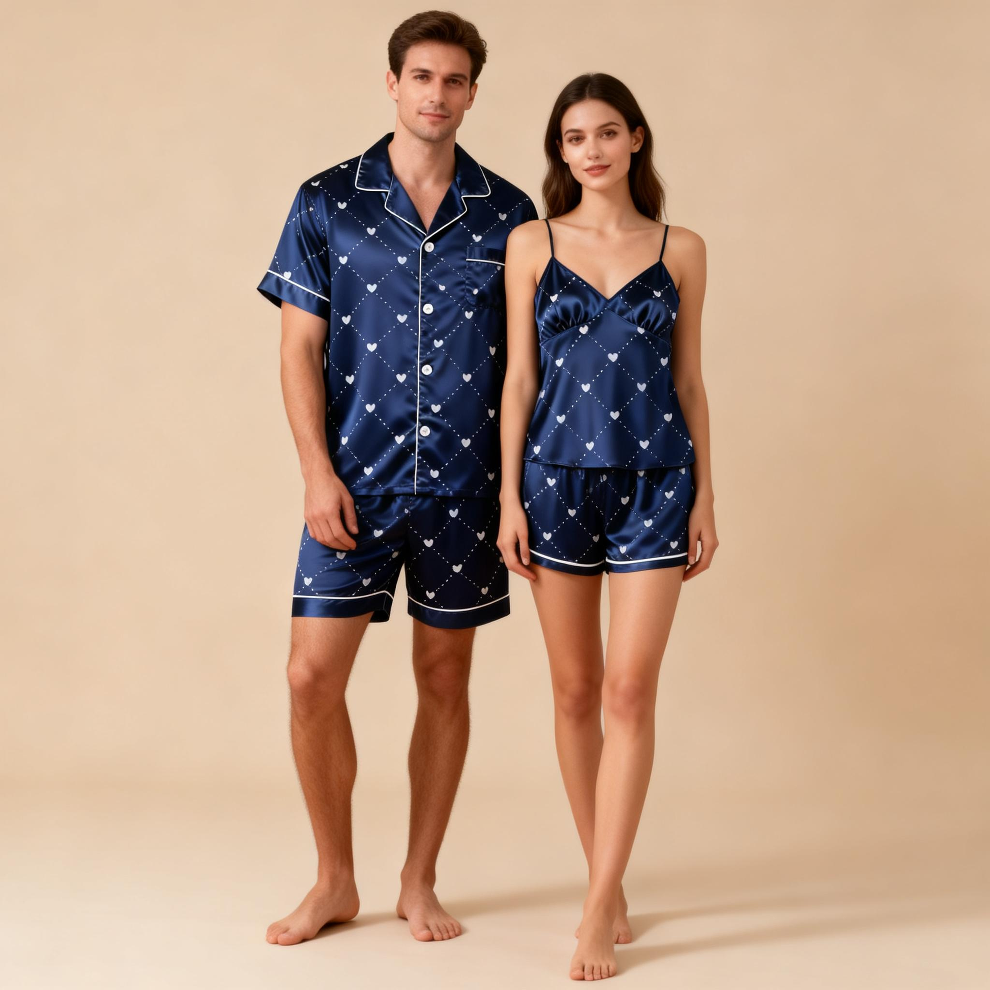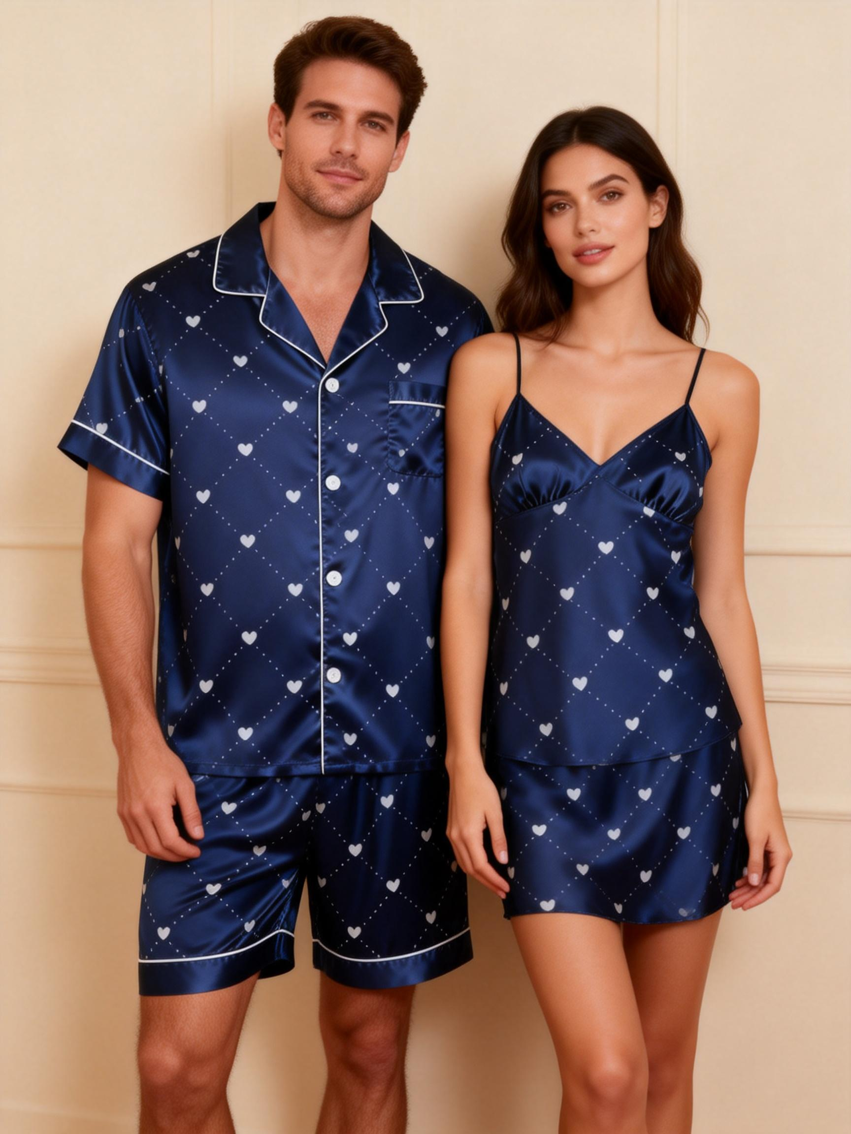 Made from smooth, breathable satin, it’s perfect for warm nights or relaxed lounging. A chic and cozy choice for couples.