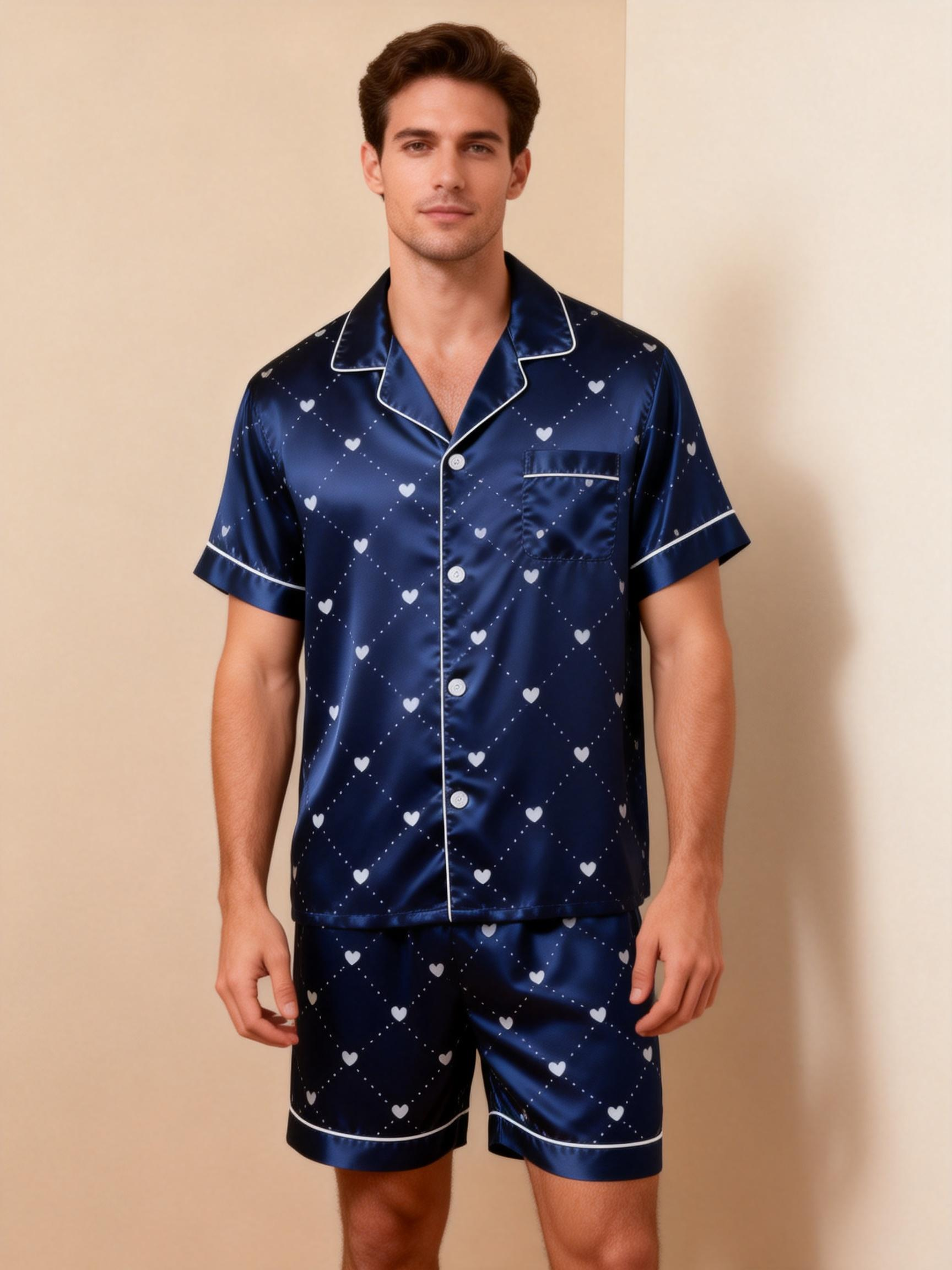 Elevate your sleepwear with our Couple Classic Satin Pajamas Short Set. Designed for comfort and style, this matching set includes: