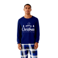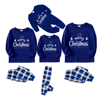 "Merry Christmas" Text Printed Blue and White Plaid Family Matching Pajamas